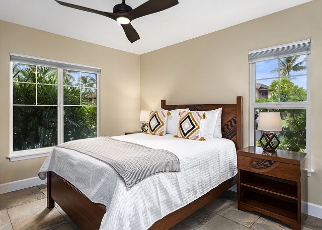 2 ベッドルーム - for 6 名様 (最大 6)1泊あたり $299 ~ $599 (税別) 最低宿泊数4泊2ベッドルーム、2バスのユニットです。クイーンズマーケットプレイスショッピングビレッジの向かいに位置し、お買い物やダイニングに便利です。ゴルフコース、フェアウェイビューを満喫してください。ラナイにはBBQグリルが設置してあり、家族で賑やかにお食事も良いですね。 ベッドタイプ: キングサイズベッド1台、クイーンサイズベッド1台