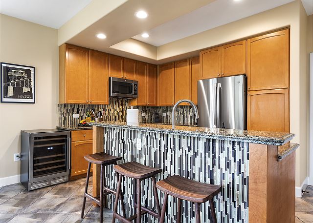 2 ベッドルーム - for 4 名様 (最大 6)1泊あたり $149 ~ $349 (税別) 最低宿泊数4泊2ベッドルーム、2バスのユニットです。クイーン&キングス・ショップスへのアクセスも便利なロケーションのヴィラタイプのコンドミニアム。2024年に新たなフローリングになりました。 2つのバスルーム共にそれぞれバスタブが付いているのが人気の秘密。嬉しいプライベートBBQグリル付き。 ベッドタイプ: キングサイズベッド1台、クイーンサイズベッド1台