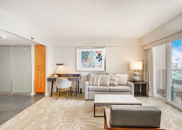 300店以上のショップやレストランが揃うアラモアナショッピングセンターに直結で、ショッピングやお食事に大変便利。ハワイ・コンベンションセンターへも約1ブロックと近く、イベント参加や出張にも適しています。