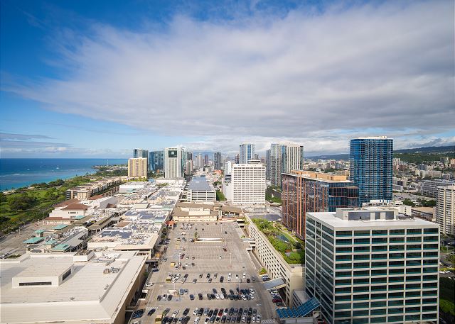 26階/1ベッド・1バス/ パーシャルオーシャン&ダイヤモンドヘッドビュー/ フルキッチン/ 無料Wi-Fi/ 無料駐車場1台分付き *