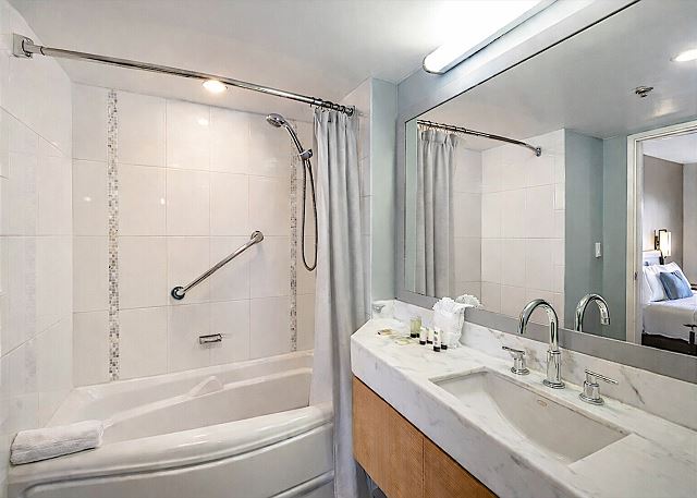 10階角部屋/ 1ベッドルーム/ 1バス/ パーシャルオーシャンビュー / フルキッチン / バスタブ/室内無料Wi-Fi *