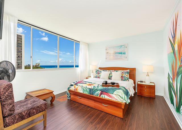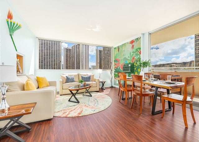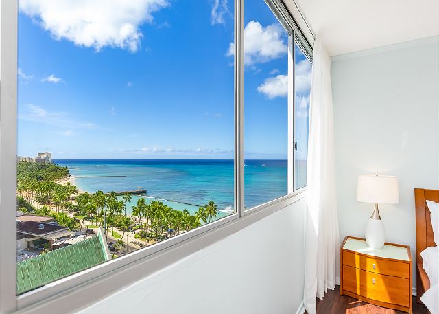 2 ベッドルーム - for 4 名様 (最大 6)1泊あたり $447 ~ $804 (税別) 最低宿泊数3泊高層フロア23階、95平米の広々とした2ベッドルーム2バスのレンタル。ラナイからのダイヤモンドヘッド・ビューとパノラミックなオーシャンビューをお楽しみください。室内のグルメ・キッチンには、調理に必要なものすべてがそろっています。セントラル・エアコン、無料Wi-Fi、無料バレーパーキング1台分付き。