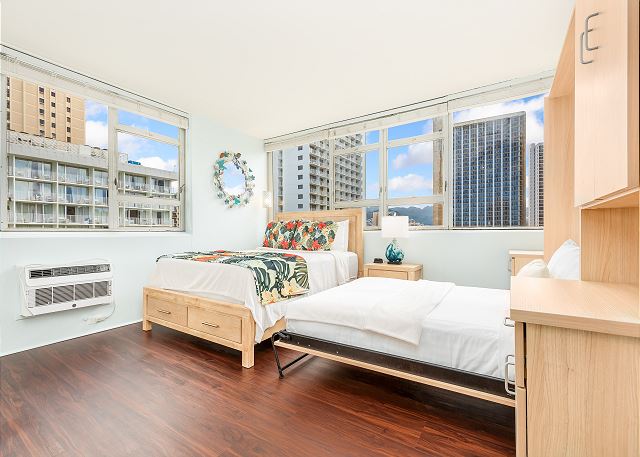 フォスター・タワー (Foster Tower) #1404号室(最低宿泊数30泊)この物件はのオンライン上のご予約は承諾待ちのリクエストとして承ります。ホノルル市郡宿泊条例により最低30泊からのご予約しかお受けできないため、当物件のオーナー様が30泊間のご予約ができるだけ多く入れるようにご予約カレンダーを調整されております。ご宿泊希望日程の前後に30泊以下の空室期間が発生してしまう場合(または発生する可能性がある場合)、日程調整のお願い、またはご予約不可となる場合がございます。弊社の予約の係が一度スケジュールを再確認後お客様にEメールにより、予約が確保させることをご了承くださいませ。