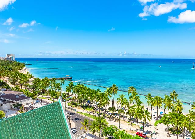 ワイキキビーチとダイヤモンドヘッドのパノラマビューが広がる14階のこのコンドミニアムで、贅沢なアイランドライフをお楽しみください。