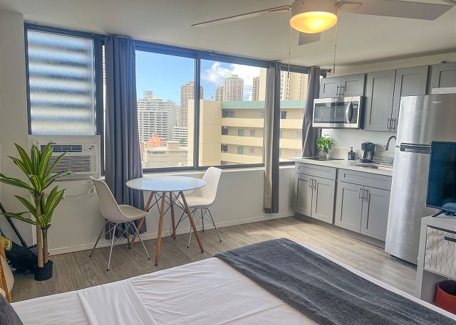 ハワイアン・モナーク (Hawaiian Monarch) #1804 - 18階 / ワンルームスタジオ / パーシャルオーシャン&シティビュー / プール / BBQエリア/ 無料室内Wi-Fi *