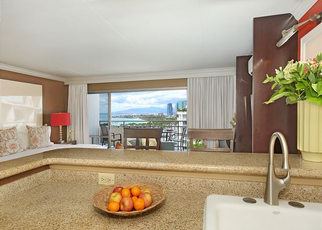 1 ベッドルーム - for 2 名様 (最大 4)1泊あたり $147 ~ $206 (税別) 最低宿泊数3泊きれいに改装されたオーシャンフロントのラージスタジオ・1バスルームのコンドミニアム。海、夕日、アラワイヨットハーバーの素敵な眺めを楽しめる。大きなキングサイズベッド1台にソファベッド、設備の整ったフルキッチン。