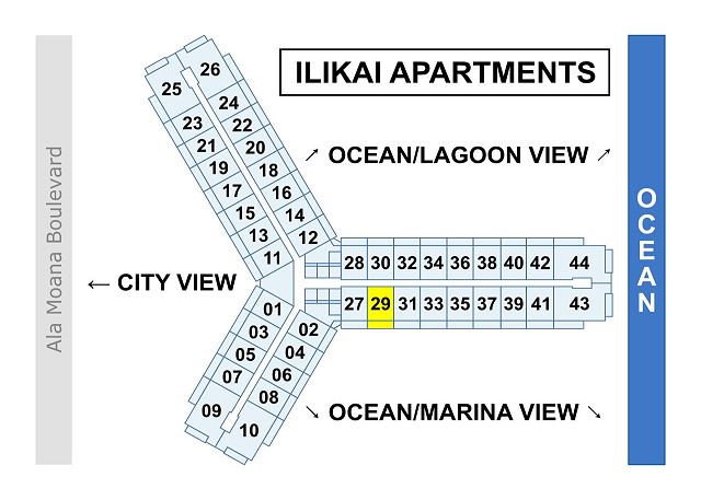 イリカイ (Ilikai) #1629 - 16階 / ワンルームスタジオ / オーシャン・マリーナビュー / フルキッチン / 静かなスプリット式エアコン/ 無料室内Wi-Fi *