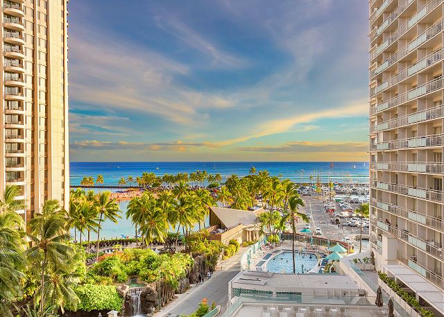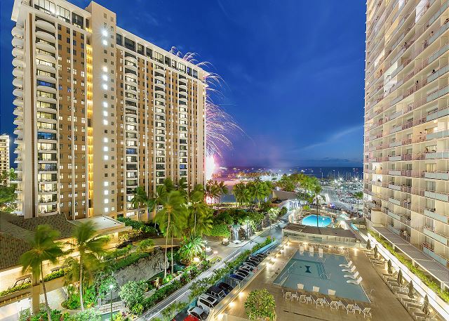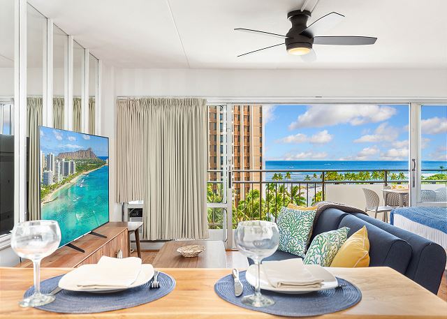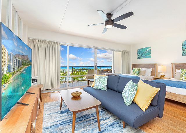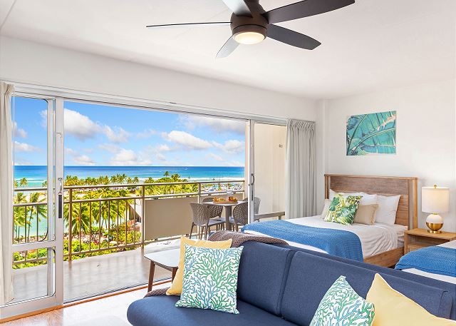イリカイ (Ilikai) #718 - 7階/ ラージスタジオ/1バス/ オーシャンビュー/ 花火も見えるお部屋/ フルキッチン/ 室内無料Wi-Fi付き *