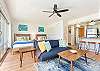 室内にはフルサイズベッド2台とソファベッド1台を備え、最大4名様まで快適にご宿泊可能。遮光カーテン、窓型エアコン、シーリングファン、無料Wi-Fi完備で、長期滞在にもおすすめです。スタイリッシュなオープンキッチンには、調理器具や食器も充実。朝食のパンケーキから夜のワインディナーまで、お好きなスタイルで過ごせます。