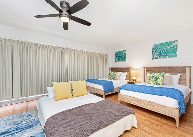 1 ベッドルーム - for 3 名様 (最大 4)1泊あたり $144 ~ $324 (税別) 最低宿泊数3泊広々としたラナイ付きのワンルームスタジオ。エアコン、フルキッチン、無料Wi-Fi、温水洗浄便座、無料駐車場1台分付き。ベッド台数:フルサイズベッド1台、ツインベッド1台、クイーンサイズのソファベッド1台。