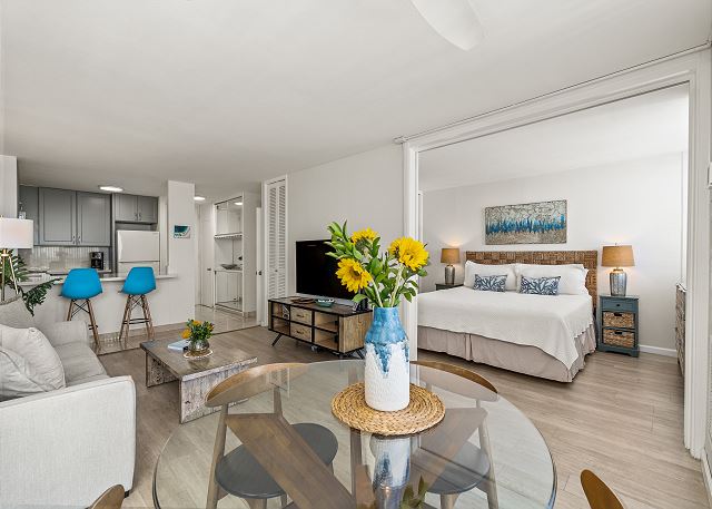 1 ベッドルーム - for 2 名様 (最大 4)1泊あたり $99 ~ $499 (税別) 最低宿泊数1泊シックに改装されたオーシャンフロントの1ベッド・1バス。フルキッチン、無料室内Wi-Fi。ワイキキの中心部とアラモアナセンターのど真ん中に立地する何処へもアクセスが便利なコンドミニアム。ベッドサイズ/台数:キングサイズベッド1台。
