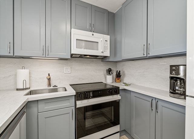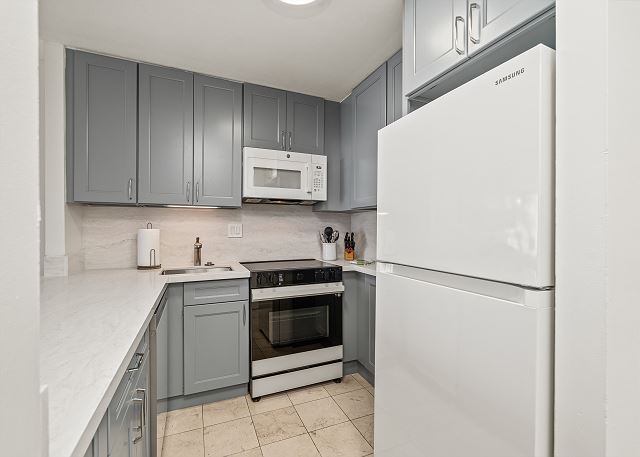 ・キッチン家電完備(製氷機付きの冷蔵庫、4口電気レンジ&オーブン、電子レンジ、炊飯器、トースター、コーヒーメーカー、食洗機)