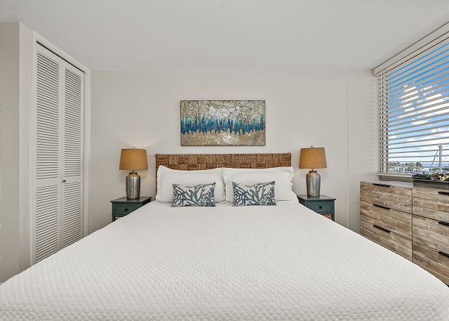 1 ベッドルーム - for 2 名様 (最大 3)1泊あたり $203 ~ $710 (税別) 最低宿泊数2泊見事なマリーナオーシャンフロントのバケーションレンタル。セントラルエアコン、無料室内Wi-Fi。キングサイズベッド1台、ソファベッド1台。ヒルトンホテルの花火開催日は、花火もお楽しみいただけます。ビーチ、デュークカハナモクラグーン、アラモアナセンター等も徒歩圏内。