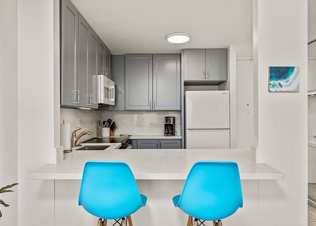 1 ベッドルーム - for 4 名様 (最大 4)1泊あたり $187 ~ $344 (税別) 最低宿泊数3泊パノラミックなオーシャン・マリーナビューを楽しめる1ベッド・1バスの角部屋。フルキッチン、セントラルエアコン、無料Wi-Fi、温水洗浄便座。キングサイズベッド1台、クイーンサイズのソファベッド1台。