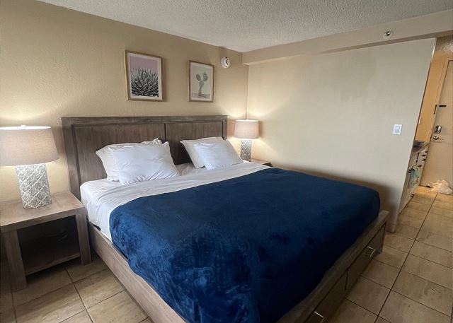 スタジオ - for 2 名様 (最大 3)1泊あたり $90 ~ $160 (税別) 最低宿泊数3泊16階の広々としたワンルームスタジオ。調理ができる簡易キッチン、無料室内Wi-Fi、バスタブ、クイーンサイズベッド1台+フルサイズのソファベッド。プール、BBQ施設、ランドリー施設、ジム等ビル共用アメニティも抜群。