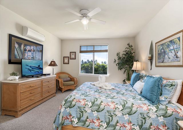 2 ベッドルーム - for 6 名様 (最大 6)1泊あたり $299 ~ $599 (税別) 最低宿泊数4泊2ベッドルーム、2バスのユニットです。クイーンズマーケットプレイスショッピングビレッジの向かいに位置し、お買い物やダイニングに便利です。ゴルフコース、フェアウェイビューを満喫してください。ラナイにはBBQグリルが設置してあり、家族で賑やかにお食事も良いですね。 ベッドタイプ: キングサイズベッド1台、クイーンサイズベッド1台