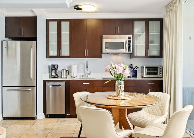 ・設備の整った簡易キッチン(製氷器付きの冷蔵庫、電子レンジ、コンロ、食洗機、炊飯器、コーヒーメーカー、トースター。※オーブンはございません。)