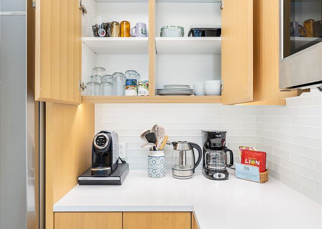 ・キッチン家電完備(冷蔵庫、食洗機、4口電気コンロ&オーブン、電子レンジ、炊飯器、コーヒーメーカー、ティーケトル、トースター)