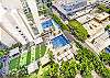 ・海水温水プールとホットタブ、スタイリッシュなラウンジチェアとカバナ