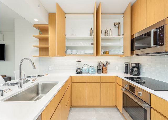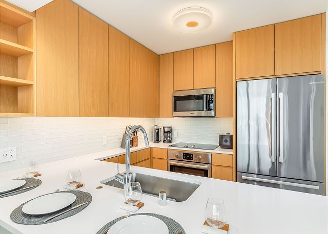 ・キッチン家電完備(冷蔵庫、食洗機、4口電気コンロ&オーブン、電子レンジ、炊飯器、コーヒーメーカー、トースター)