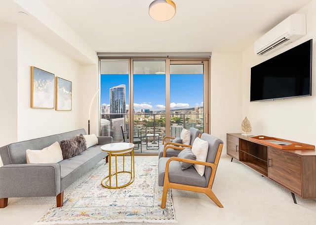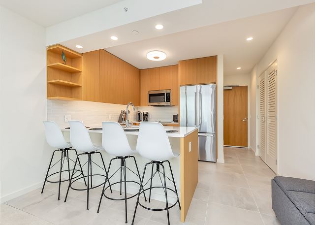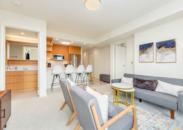 2 ベッドルーム - for 5 名様 (最大 6)30泊あたり $5,550 ~ $9,930 (税別) 宿泊条例により最低宿泊数30泊。オンライン上予約は承諾待ちのリクエストとして取り扱われます。2023年、新登場のスカイ・アラモアナ。このコンドミニアムは、ハワイのアイランドスタイルの魅力とモダンなデザインが調和した空間。アラモアナエリアの中心にありながら、ゆったりとした贅沢なひとときを過ごすことができます。スカイ・アラモアナで新しい時代の始まりを感じてください。