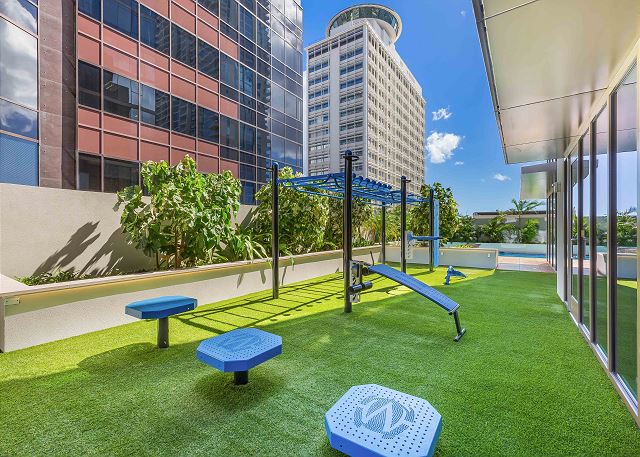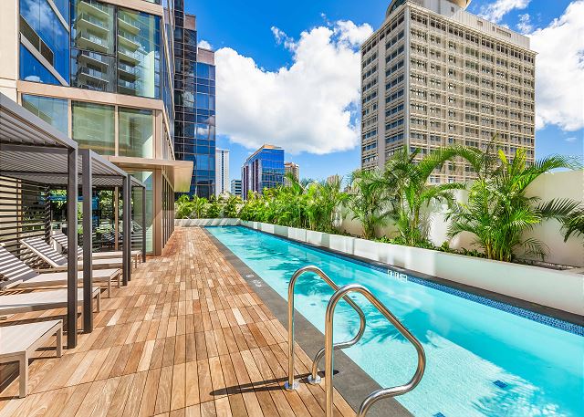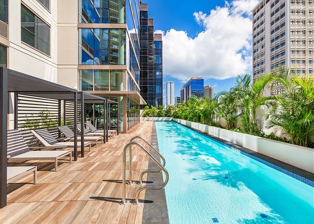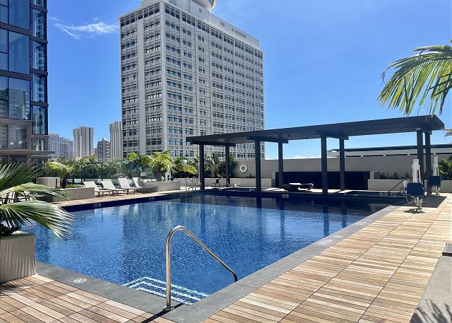 ホノルル最大級の広さを誇る8階のレクリエーションデッキ、スカイテラスで贅沢なひとときを