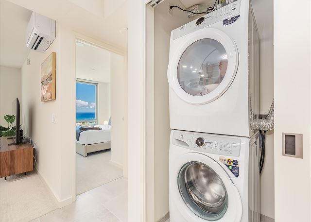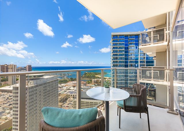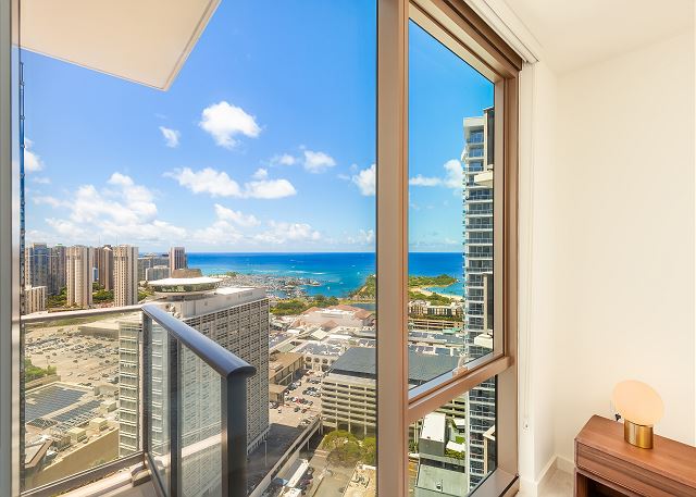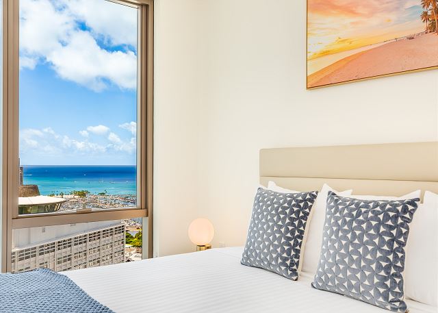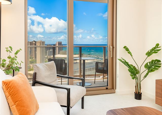 スカイ・アラモアナ(Sky Ala Moana) #3507 - 35階/ オーシャン&シティビュー/ 1ベッドルーム/ 1バス/ フルキッチン/落ち着いたナチュラルなインテリアが魅力/ 無料Wi-Fi / 室内洗濯機&乾燥機 / 無料駐車場1台付き *