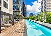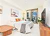 このお部屋は、床から天井までの大きな窓から自然光が差し込み、リビングを明るく心地よい空間に。美しい景色を眺めながら、穏やかな時間をお楽しみいただけます。8階のアメニティデッキには、ジム、プール、ホットタブ、カバナがあり、リゾート感あふれる贅沢なひとときを過ごせます。心も体もリフレッシュし、非日常を満喫できるでしょう。