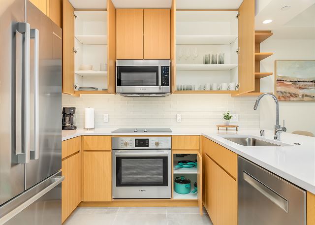 ・キッチン家電完備(冷蔵庫、食洗機、電気コンロ&オーブン、電子レンジ、炊飯器、コーヒーメーカー)