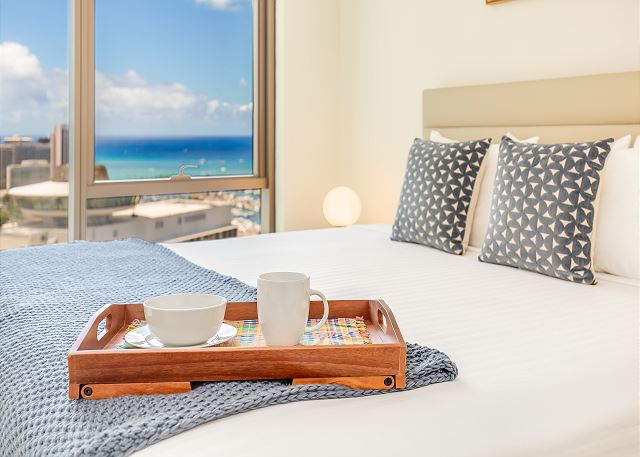 1 ベッドルーム - for 4 名様 (最大 4)30泊あたり $4,980 ~ $9,990 (税別) 宿泊条例により最低宿泊数30泊ハワイの新たなラグジュアリーコンドミニアム、『スカイ・アラモアナ』。2023年に誕生した今話題のコンドミニアム!このペントハウス・心地よい贅沢が広がる空間で、ハワイの魅力を満喫しませんか。新たなバケーションのスタイルで、ハワイ長期滞在の夢を実現します。
