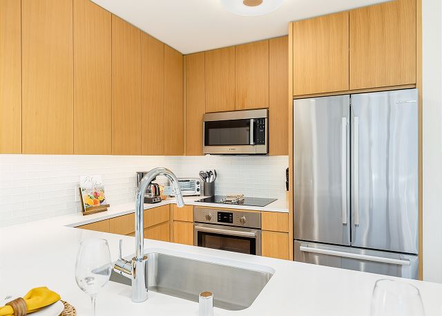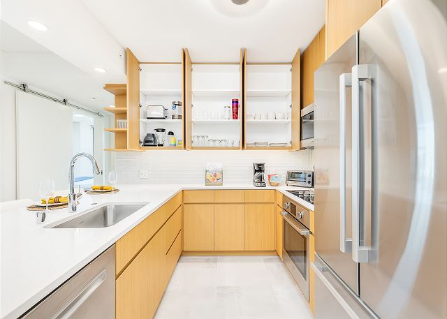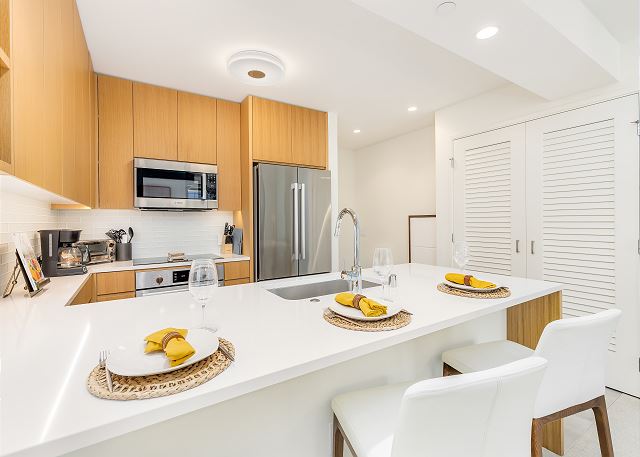 室内にはフルキッチン、洗濯機・乾燥機を完備。長期滞在・ファミリー滞在・ワーケーションにも最適です。徒歩圏内には、食材調達に便利な日系のスーパーやオーガニックを扱うスーパー、日用品の買い物に便利なディスカウントストア等が揃い、食材や日用品の調達も非常に便利。
