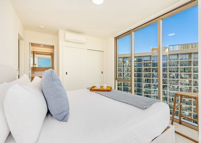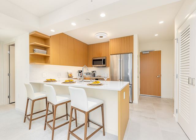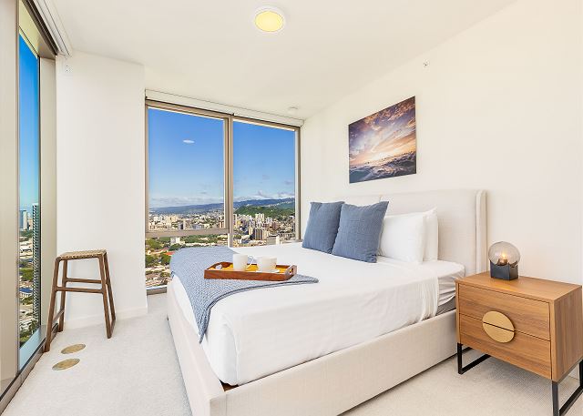 2 ベッドルーム - for 5 名様 (最大 6)30泊あたり $5,430 ~ $9,420 (税別) 宿泊条例により最低宿泊数30泊。オンライン上予約は承諾待ちのリクエストとして取り扱われます。2023年、新登場のスカイ・アラモアナ。このコンドミニアムは、ハワイのアイランドスタイルの魅力とモダンなデザインが調和した空間。アラモアナエリアの中心にありながら、ゆったりとした贅沢なひとときを過ごすことができます。スカイ・アラモアナで新しい時代の始まりを感じてください。