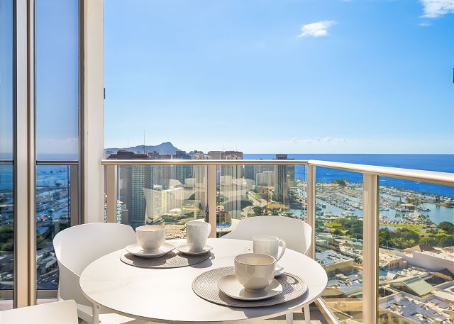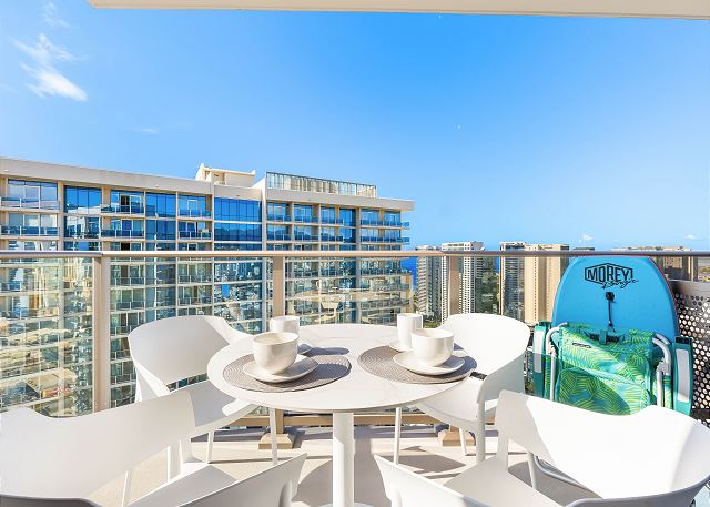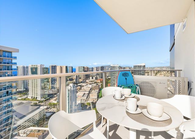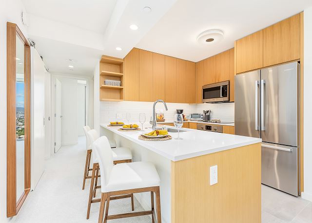 38階/パーシャルオーシャン&マウンテンビュー/ 2ベッドルーム/ 2バス/フルキッチン/ラナイ/エアコン/ 室内無料Wi-Fi / 室内洗濯機&乾燥機 /無料駐車場1台付/ 2023年に誕生した話題のコンドミニアム *