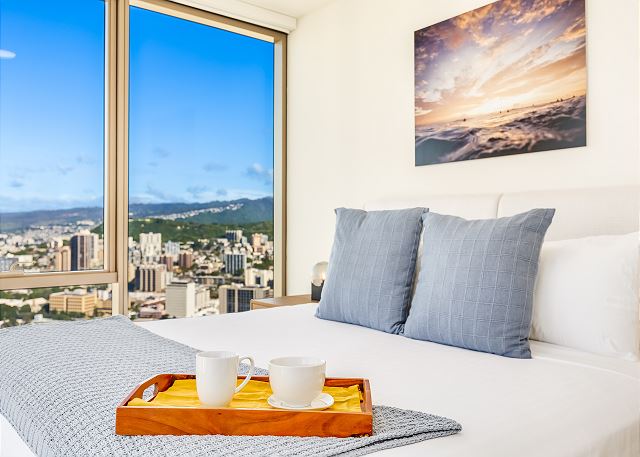 スカイ・アラモアナ(Sky Ala Moana) #4102 - 41階角部屋/パーシャルオーシャン&マウンテンビュー/ 2ベッドルーム/2バス/フルキッチン /無料室内Wi-Fi /室内洗濯機&乾燥機 /エアコン/ラナイ/バスタブ/無料駐車場1台付き *