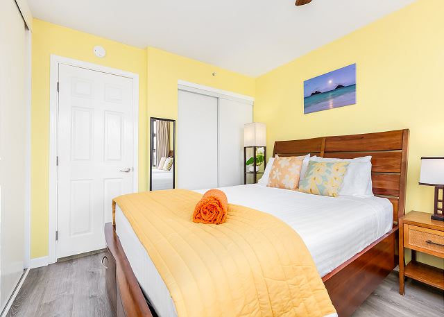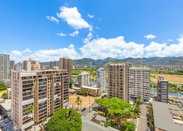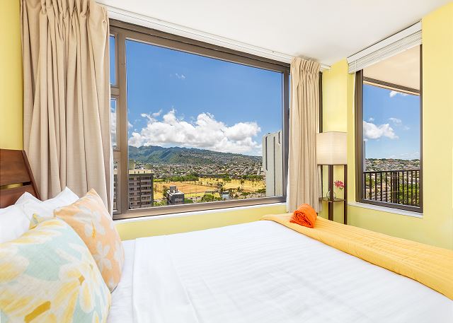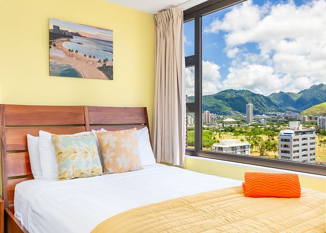 (STR #2211-CCH-0208)アラワイ運河に面した、マウンテンビューが楽しめる高層階の1ベッドルーム。36階のラナイから遠くの美しいコオラウ山脈の景色、そして夜はホノルルシティライトの眺めを楽しむことができるバケーションレンタル。バニアン特有の家庭的で広々としたお部屋には、クィーンサイズベッド1台と、ソファベッド1台が設置されています。フラットスクリーンテレビ、DVDプレーヤー。エアコン、Wi-Fi、無料駐車場付き。