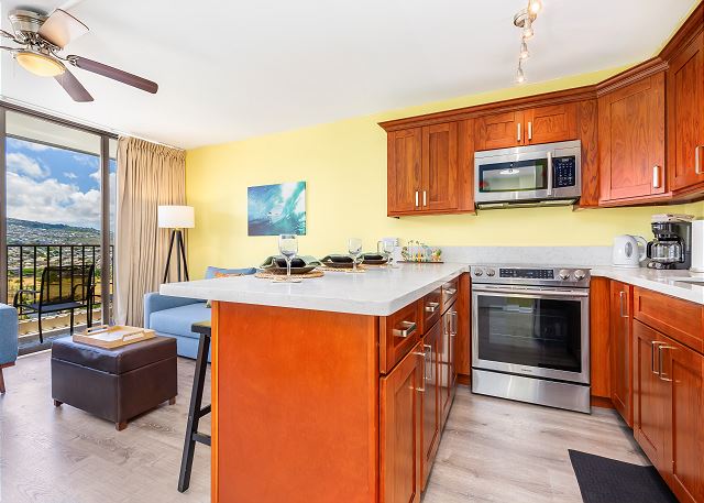 26階/1ベッド・1バス/ パーシャルオーシャン&ダイヤモンドヘッドビュー/ フルキッチン/ 無料Wi-Fi/ 無料駐車場1台分付き *
