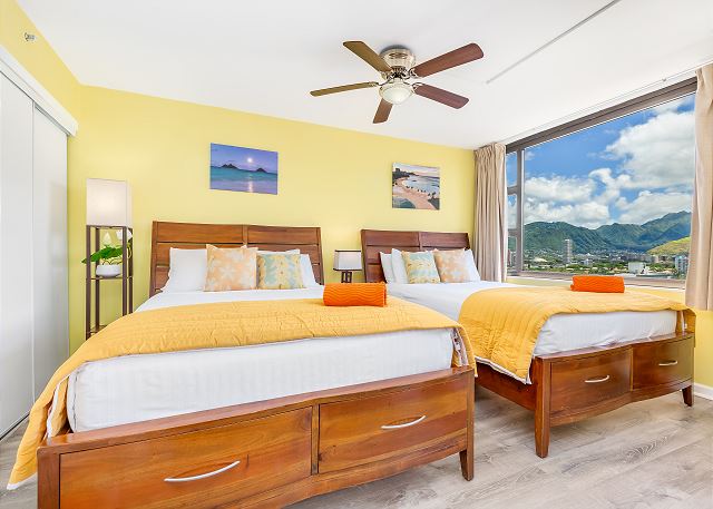 1 ベッドルーム - for 4 名様 (最大 4)30泊あたり $5,160 ~ $10,470 (税別) ホノルル市郡宿泊条例により最低宿泊数30泊ハワイリピーターに人気のワイキキ・バニアンの36階、素晴らしいダイヤモンドヘッド&太平洋の眺めが楽しめる1ベッドルームのコンドミニアム。ベッドルームにクィーンサイズベッド2台に、リビングにソファベッドもあり。改装済みのお部屋で、快適なハワイステイを楽しめます。フルキッチン、エアコン、TV、無料Wi-Fi、無料駐車場付。