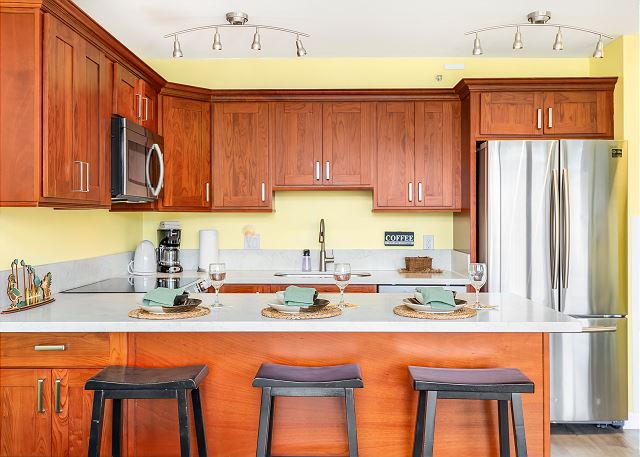 - キッチン アイランドキッチン, オーブン, キッチン, コーヒーメーカー, ストーブ, トースター, 冷蔵庫, 製氷器, 電子レンジ, 食器・調理器具
