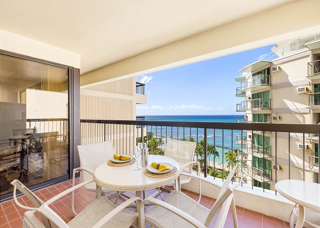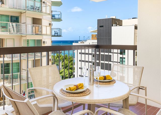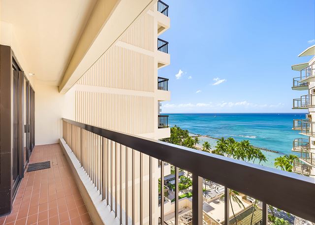 8階/ 2ベッドルーム/ 2バス/パーシャルオーシャンビュー/ 広めのラナイ/ フルキッチン/バスタブ/ エアコン/ 無料室内Wi-Fi付き *