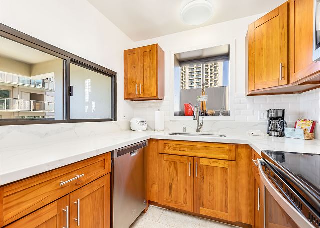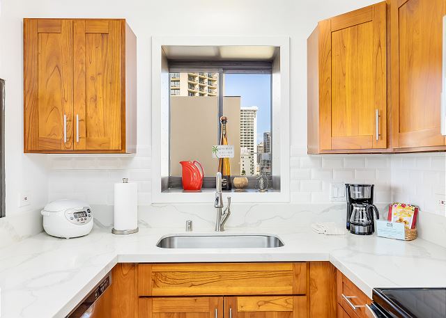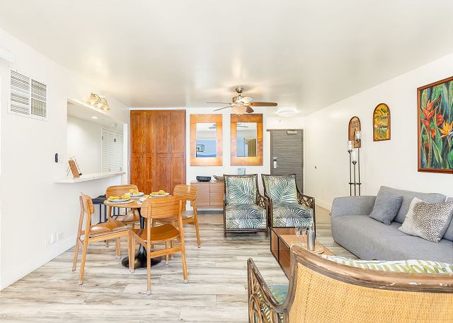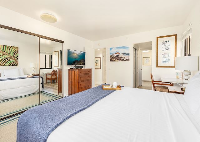 2 ベッドルーム - for 4 名様 (最大 6)1泊あたり $475 ~ $824 (税別) 最低宿泊数3泊2ベッドルーム、2バス、温水洗浄便座付きのお部屋です。豪華なタイル張りフロア、御影石のキッチンカウンター、イタリアンマーブルを使ったバスルーム、マホガニー製キャビネットを使ったインテリアにリノベーションされました。フルキッチンには、ステンレス製家電で統一された美しいお部屋です。ワイキキビーチのど真ん中。クヒオビーチは目の前。セントラル・エアコン、無料Wi-Fi、無料バレーパーキング1台分付き。