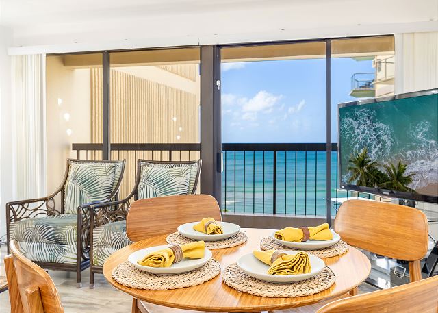 ・オーシャンビューの広いラナイへのアクセス(4名掛けダイニングテーブル有り)