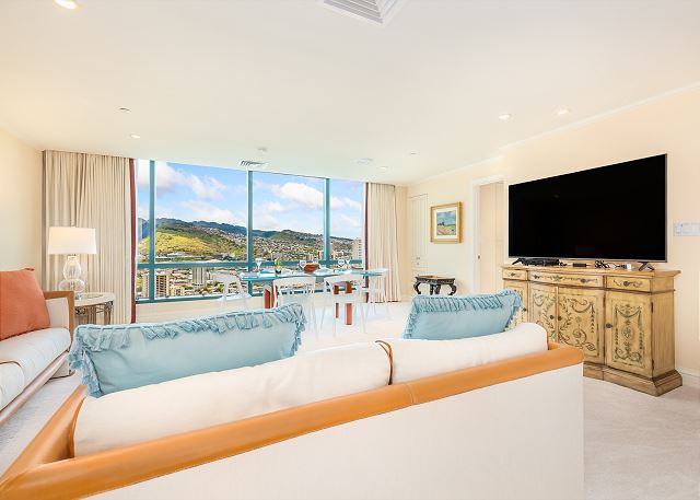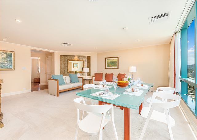 ワイキキランドマーク 3501号室(最低宿泊数30泊)ワイキキを訪れた事があるなら、きっと見覚えのある高層コンドミニアム ワイキキ・ランドマーク。この高級コンドミニアムは、オアフ島の最も便利でラグジュアリーなワイキキ内のメイン通り、1888カラカウア・アベニューに位置しています。 このバケーションレンタルは35階への専用エレベーター付き3ベッドルーム3バスのお部屋です。