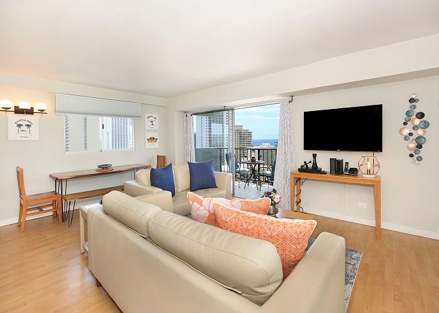3 ベッドルーム - for 6 名様 (最大 6)1泊あたり $500 ~ $800 (税別) 最低宿泊数3泊最上階26階のペントハウス角部屋、オーシャン&ダイアモンドヘッドビューの3ベッドルーム・2バスのバケーションレンタル。素晴らしいオーシャン&ダイアモンドヘッドビューのプライベートラナイ、ヒルトンハワイアンビレッジの花火、広々としたリビングルーム、設備の整ったフルキッチン、セントラルエアコン、室内洗濯機・乾燥機、無料室内Wi-Fi付き。ベッド台数:キングベッド1台、クイーンベッド1台、フルサイズベッド1台。