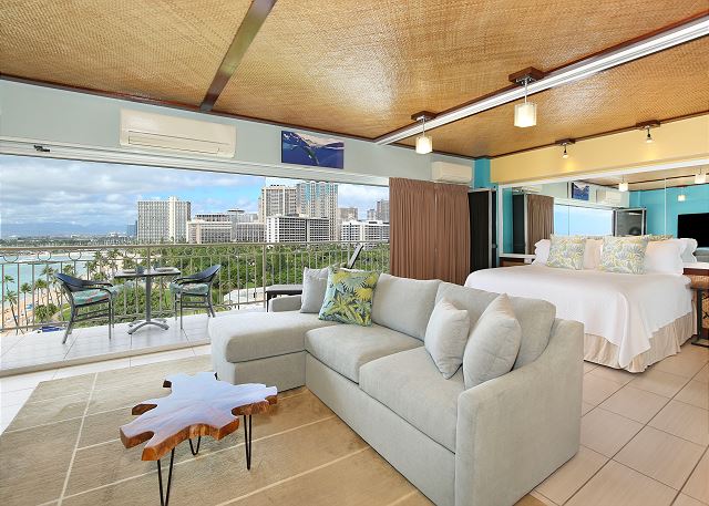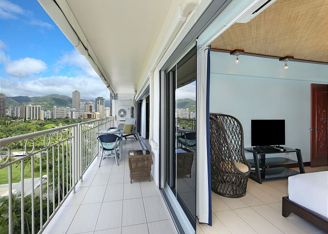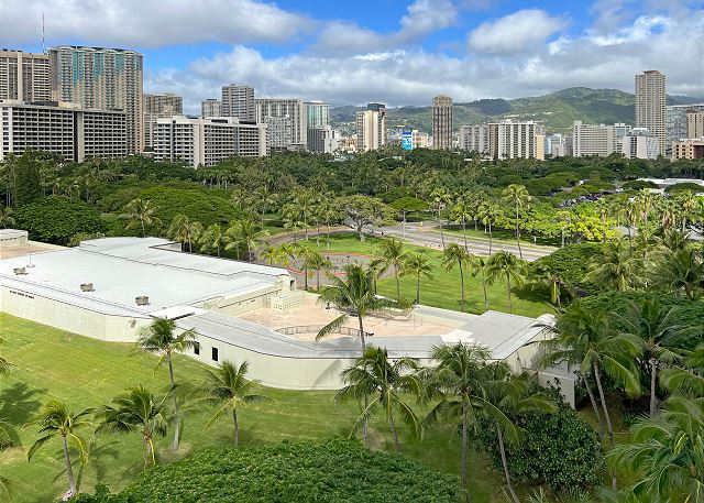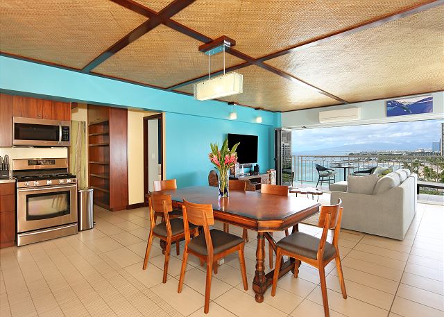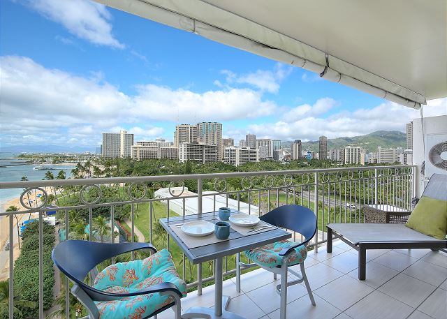 オンライン上予約は承諾待ちのリクエストとして取り扱われます。ワイキキショア14階 角部屋の2ベッドルーム/2バス。フルキッチン、室内洗濯機・乾燥機、無料Wi-Fiあり。ラナイからは素晴らしいオーシャンビュー、フォート・デルッシー・ビーチパークの緑、コオラウ山脈のパノラミックビュー。