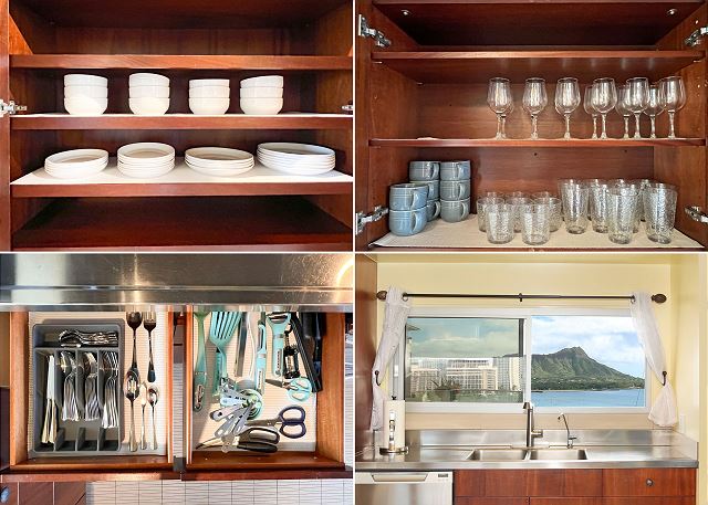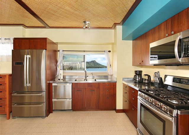 ・ キッチンの窓から眺められるゴージャスなダイヤモンドヘッドとオーシャンビュー