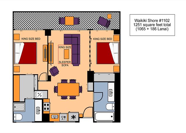 2 ベッドルーム - for 4 名様 (最大 6)1泊あたり $922 ~ $2,576 (税別) 最低宿泊数3泊贅沢なオーシャンフロントの7階角部屋2ベッドルーム・2バスのバケーションレンタル。設備の整ったフルキッチン、オーシャンフロントビューの広々としたラナイ、エアコン、バスタブ、室内洗濯機・乾燥機、温水洗浄便座 、無料駐車場1台分付き。ベッド台数:キングベッド2台。事前リクエストにて無料ローラウェイベッド2台分。
