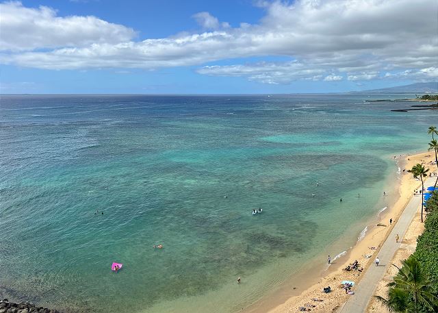 こちらの物件にはプールはございませんが、建物から直接ワイキキビーチの白い砂浜へアクセス可能です!1階には様々なショップもあり、ワイキキビーチウォークのショッピングやダイニングまで徒歩わずか2分。ハワイの魅力が詰まった最高のロケーションで、夢のようなバケーションをお楽しみください。