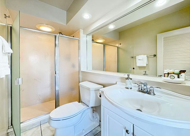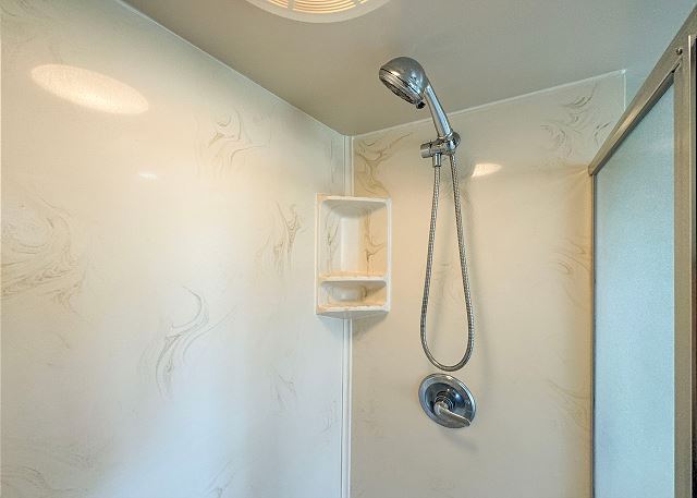 ・隣接するメインバスルームにはハンドシャワー付きのシャワールーム(バスタブはありません)