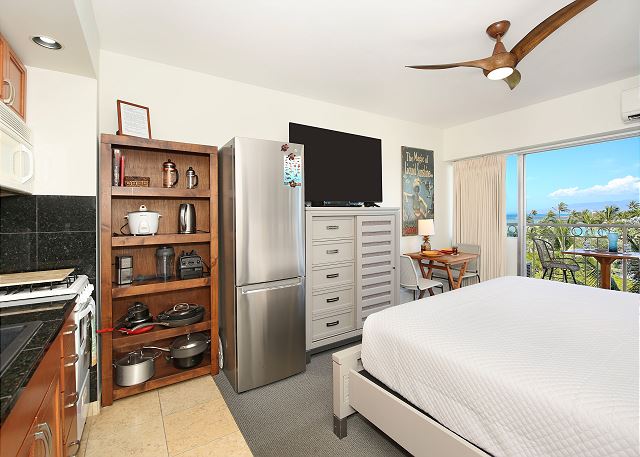 5階/ パーシャルオーシャンビュー/ スタジオタイプ・1バス / フルキッチン / ラナイ /エアコン / 室内無料WIFI / 室内洗濯機&乾燥機 / 2023年リノベーション済み *