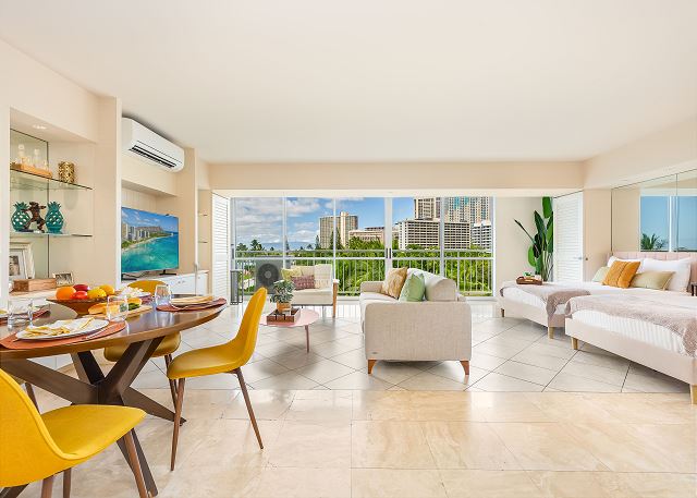 コンドミニアムの周りは、サーフボード、カヤック、スタンドアップパドルボード、カタマラン、サーフィンレッスンなどアクティビティやレンタルショップ、レストラン、フードコートなどで充実しています。ハワイでの滞在を十二分に楽しめ、思い出深いものにするための必要なものは全てここにあります! 【お部屋の間取りについてお知らせ】法的には1ベッドルームタイプの間取りですが、リビングルームとベッドルームの仕切りをなくした改装をしているためスタジオタイプになっております。